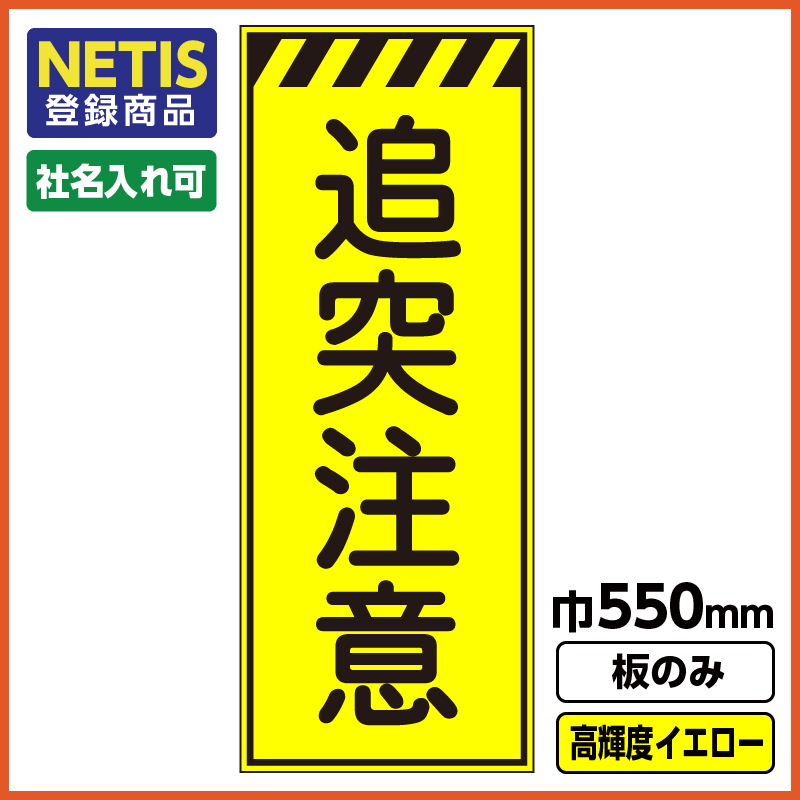工事看板 プリズム高輝度反射 蛍光 550X1400 追突注意
